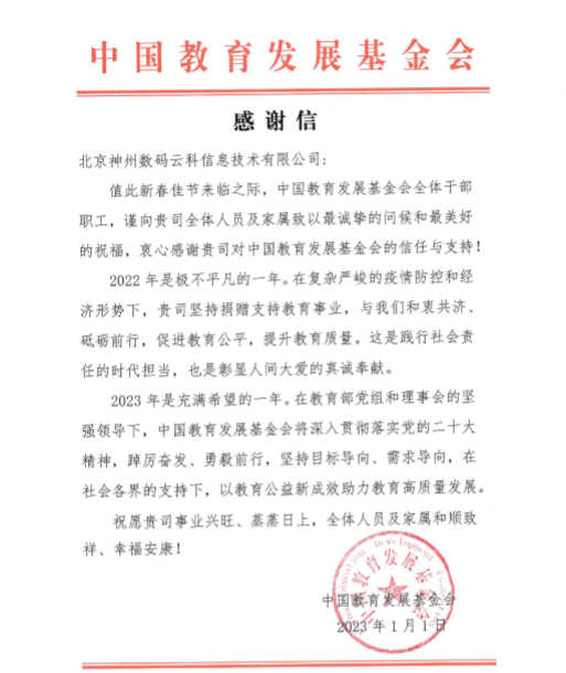 近期,evo视讯真人官网米兰(中国)AC Milan收到中国教育开展基金会的感谢信,以感谢evo视讯真人官网米兰(中国)AC Milan2022年在职业教育领域的贡献和实践,尤其是在全国职业院校大赛(中高职组)中对大赛顺利召开所付出的努力。